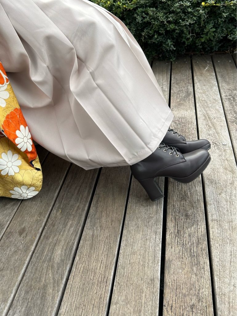 ブーツの場合は筒とヒールの高さによって、袴の長さを調整する必要があります✨
