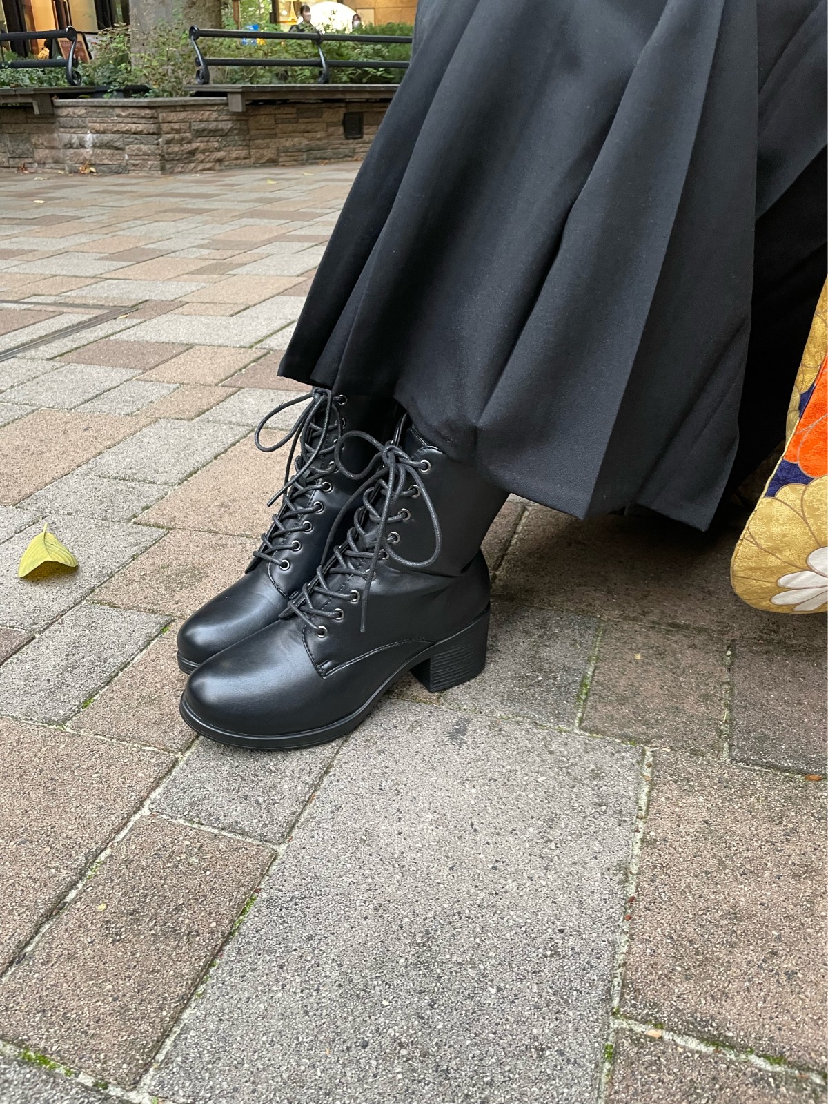 店頭でも一番人気だという厚底ヒールのレースアップブーツ。