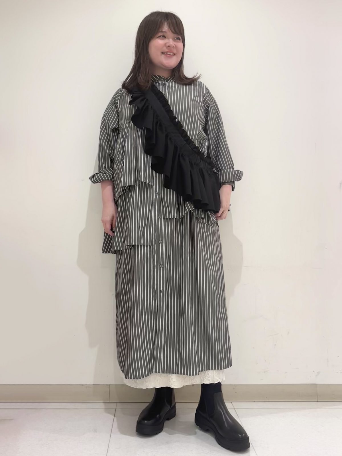 ほどよいボリューム感はスタイルアップを叶えながらコーディネートにトレンド感もプラスできます。