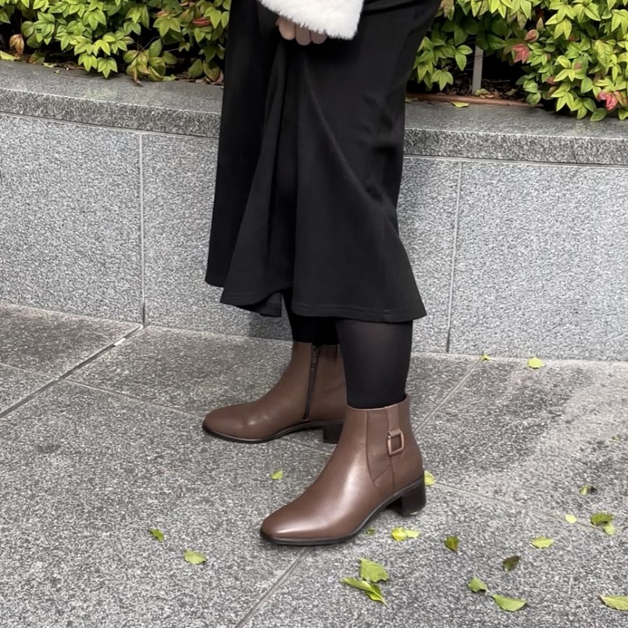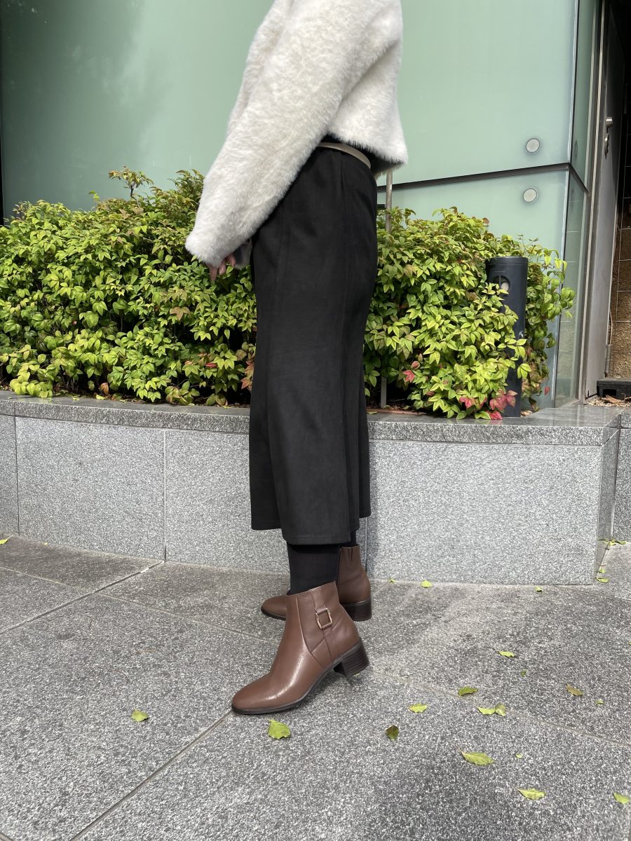 売り場でも「この色のブーツってタイツとも合うかな…?」と悩まれる方も多いので、今回はブラウン系のブーツをタイツで合わせてみました😊