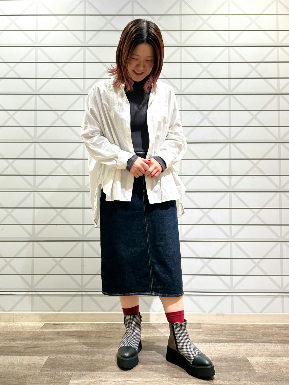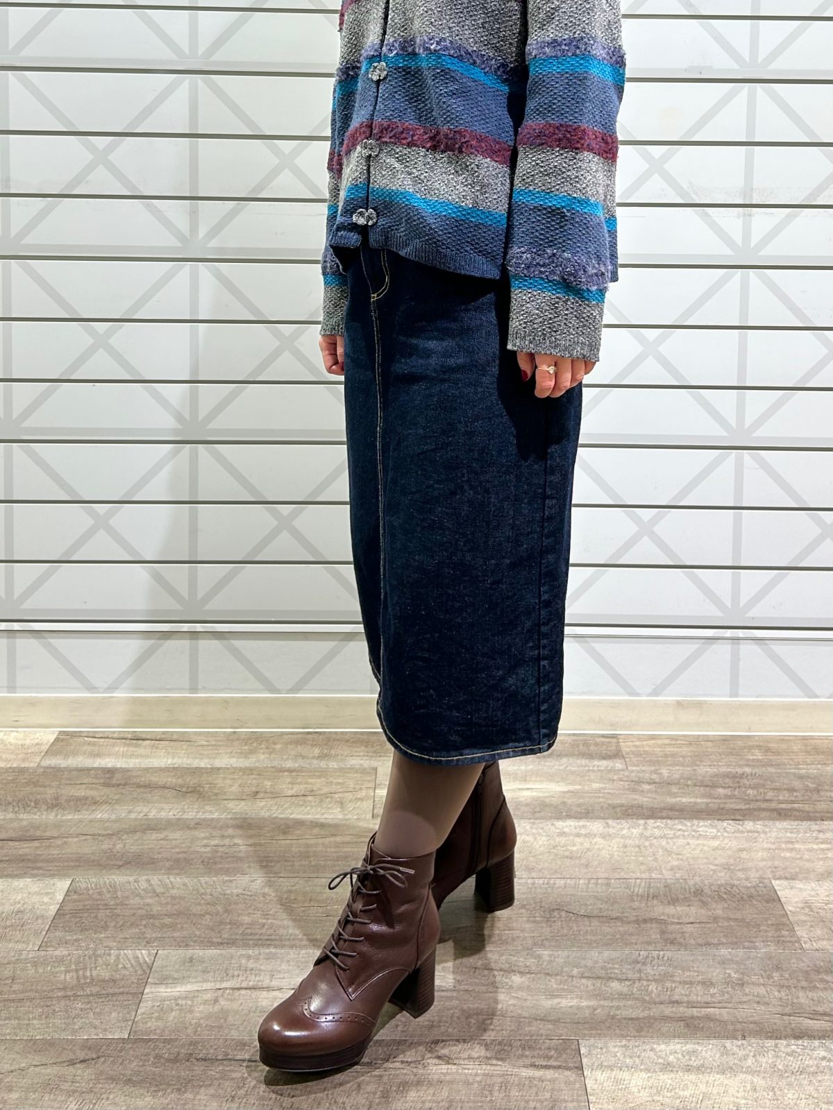 スカートを履く時はタイツ+靴下、パンツスタイルも裾をブーツインすると寒がりさんも安心です⛄️