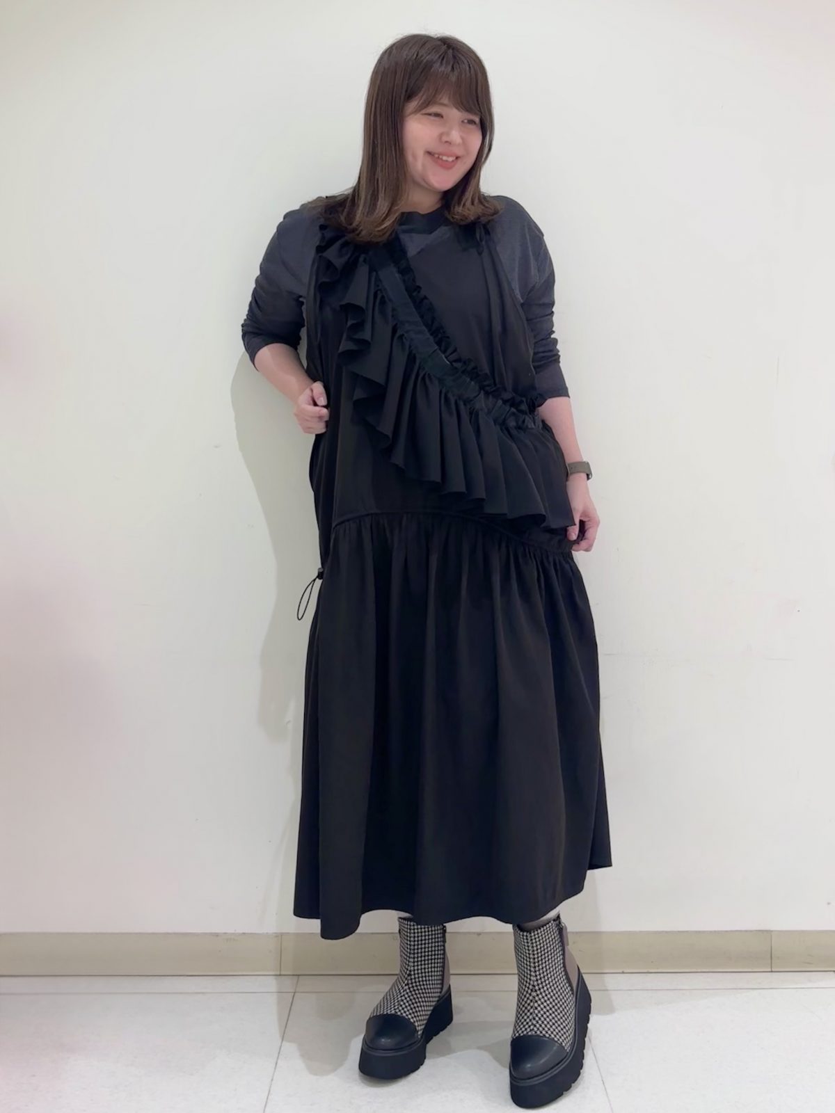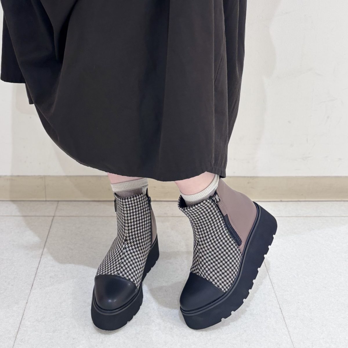 スニーカーももちろん楽なのですが、丈が長めのワンピースの時は厚底ブーツを合わせると脚長効果もあってバランスよくなります✨今回履いているグレージュコンビは千鳥格子のデザインが人とかぶらないのでオススメです🐻🐻🐻