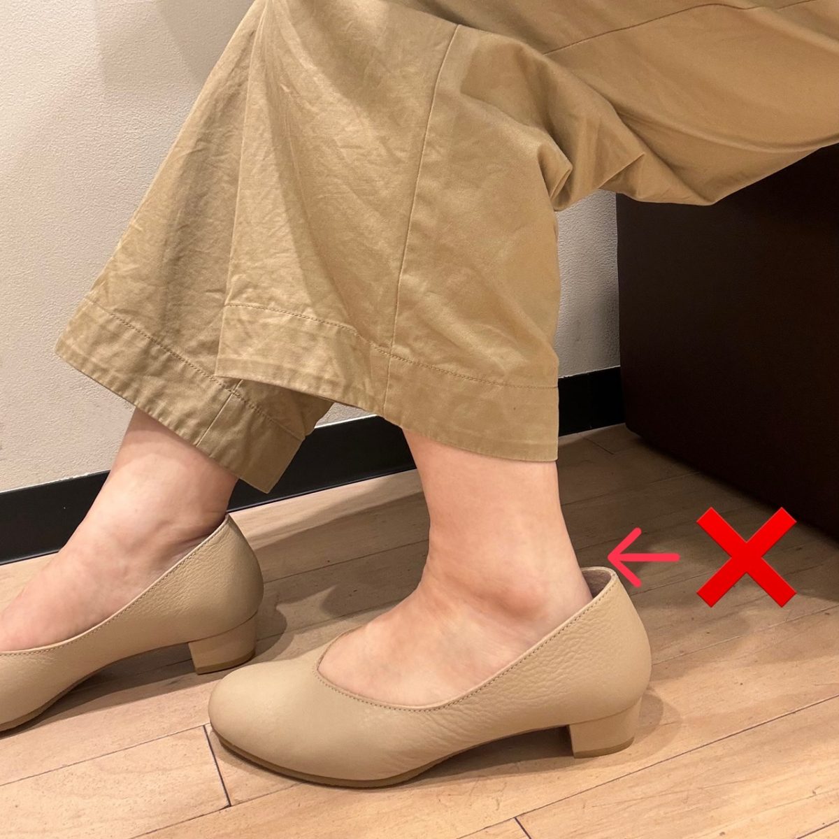 この状態だとかかとがパカパカしてしまいますよね😢靴擦れの原因になることも…。