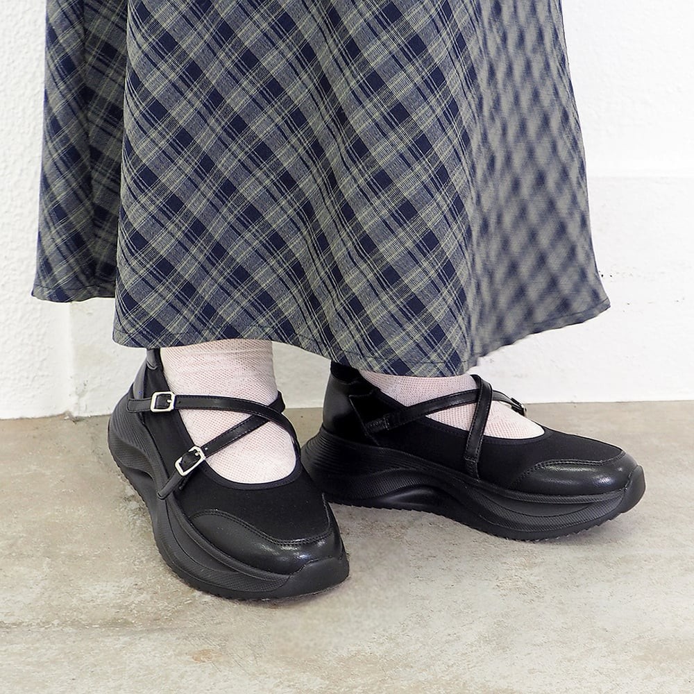 少しハードな厚底もクロスストラップで甘辛バランスに♪