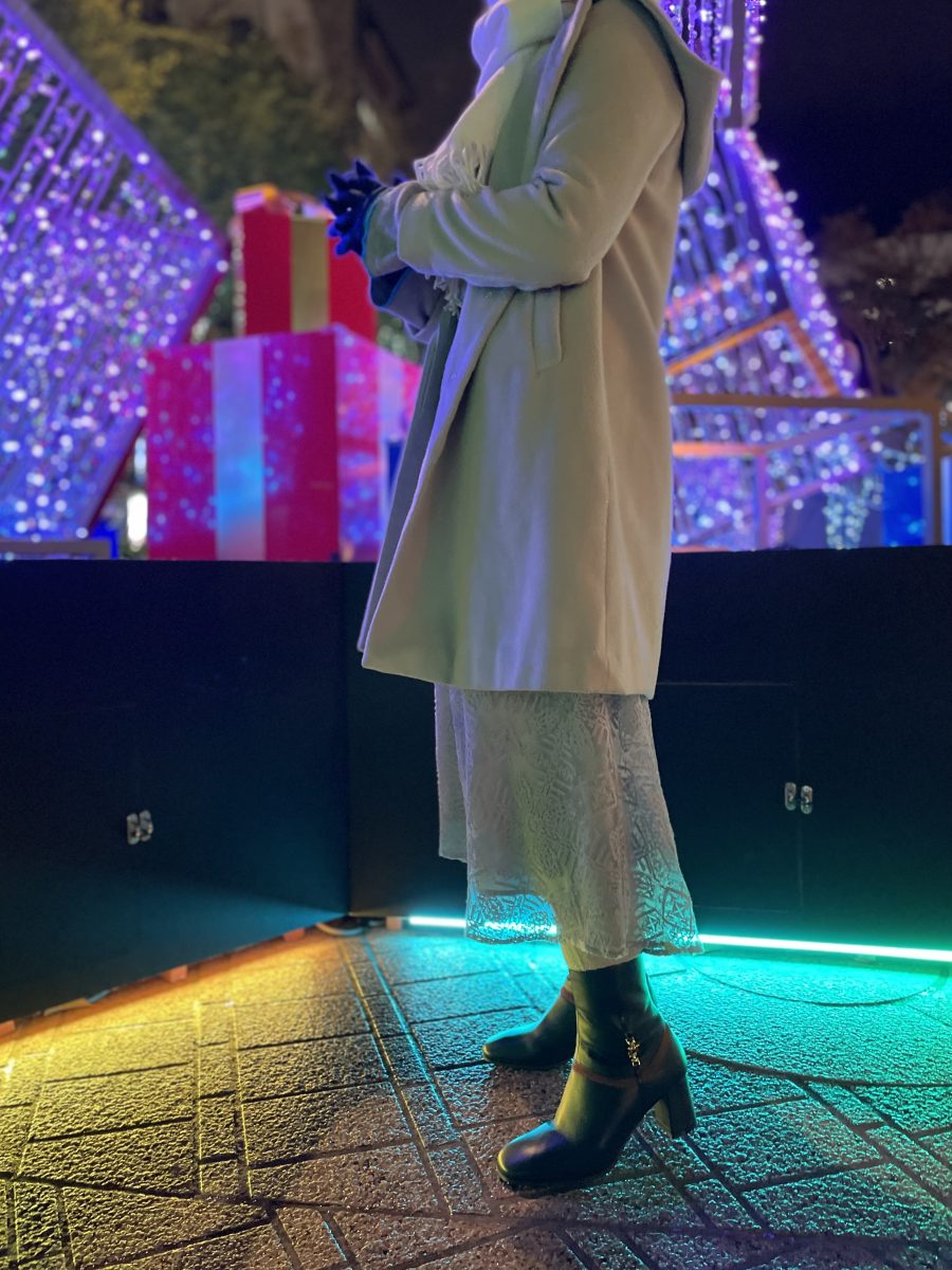 お出かけのご予定がある方はコートに合うブーツをお探しの方が多いので、今回はコートに合わせてイルミネーションコーデを組んでみました☺️