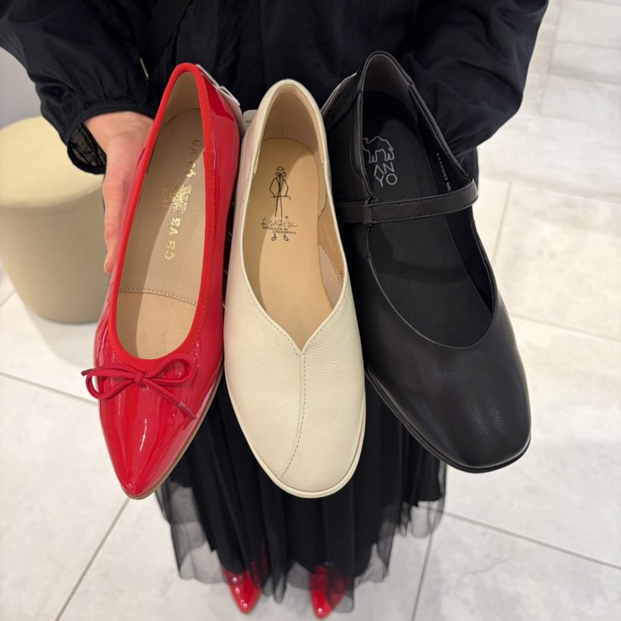 まずはモノトーンコーデが多いスタッフMが選んだサヴァサヴァのバレエシューズです。