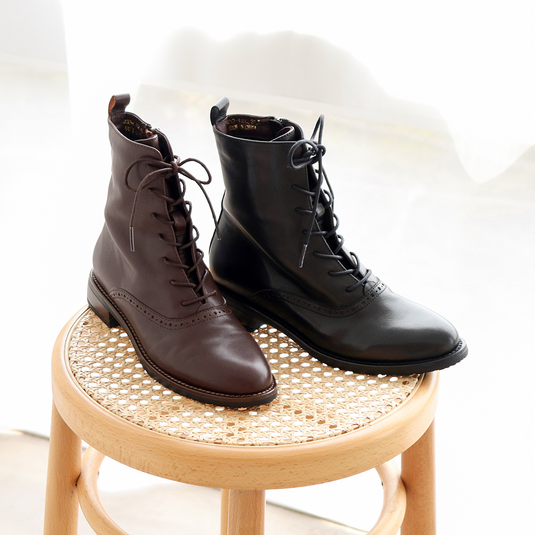 「ヒールが苦手」「身長を盛りたくないからぺたんこ希望」そんな方にもおすすめなレースアップブーツがあります😊