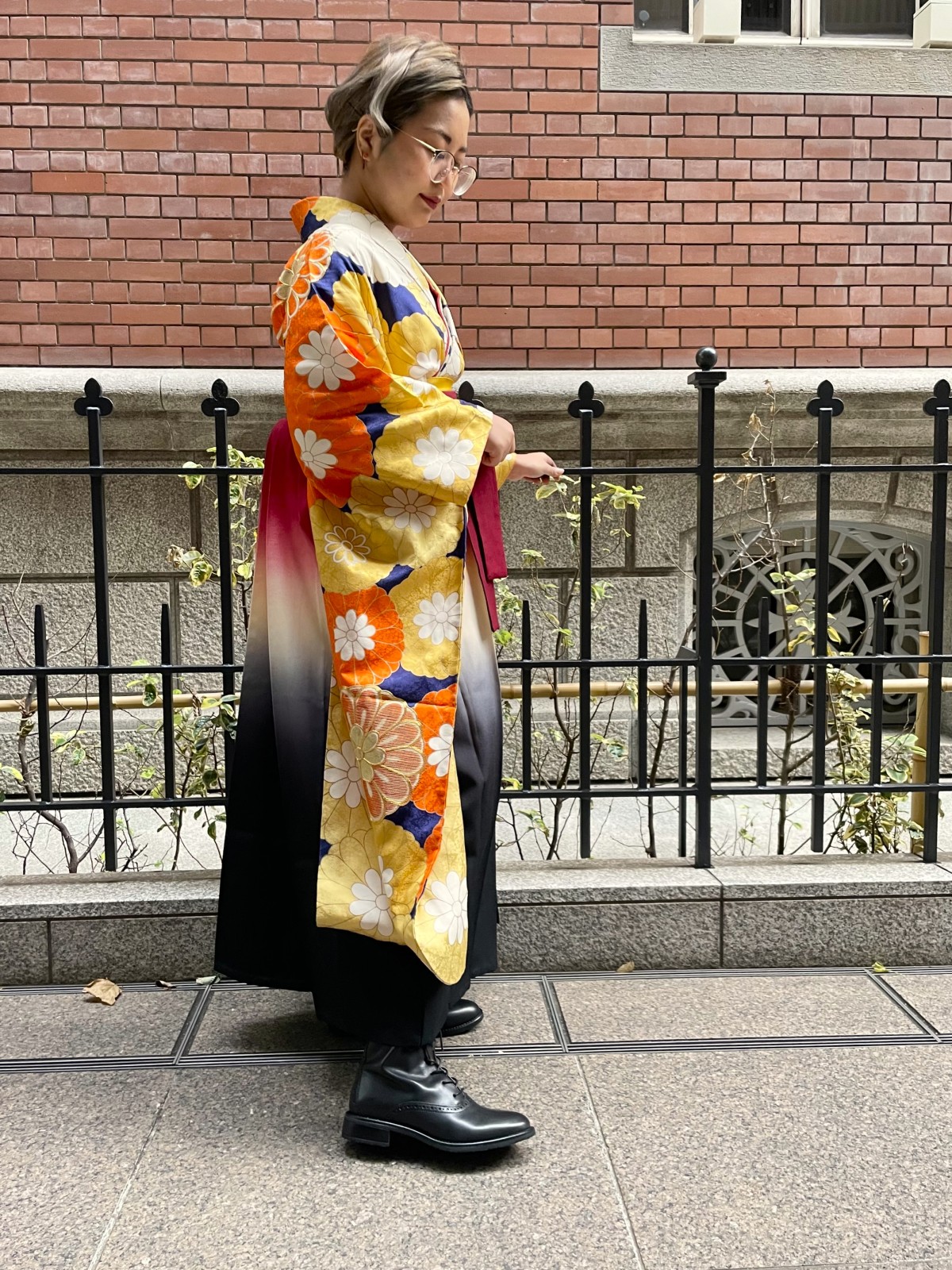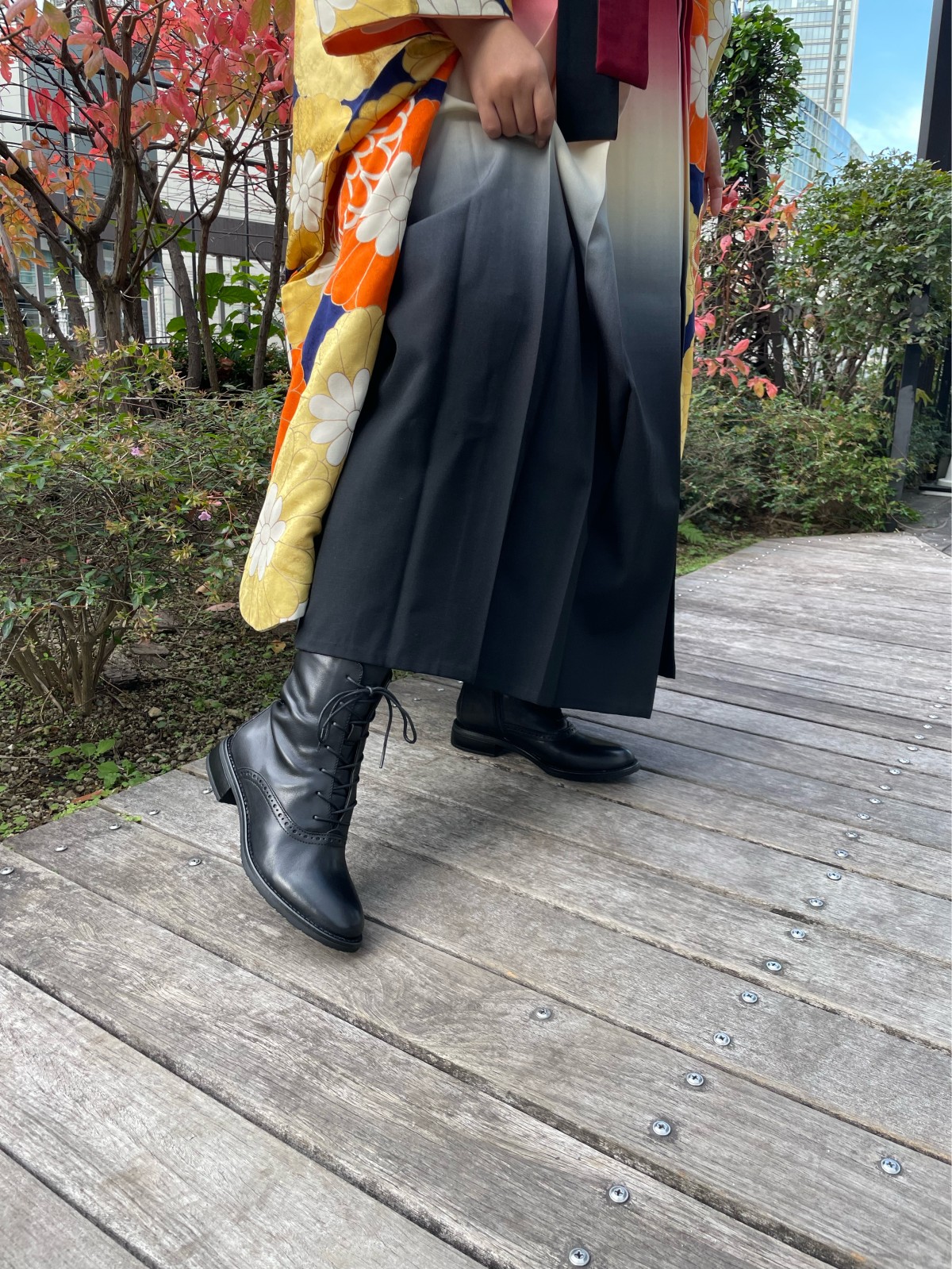 最終回の今回は、ネイビーの袴と合わせるレザーブーツをご紹介します。
