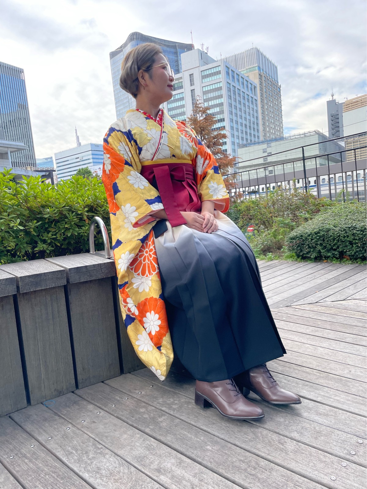 とっておきの着物ならなおさら、ヒールのレザーブーツを合わせると上品です✨