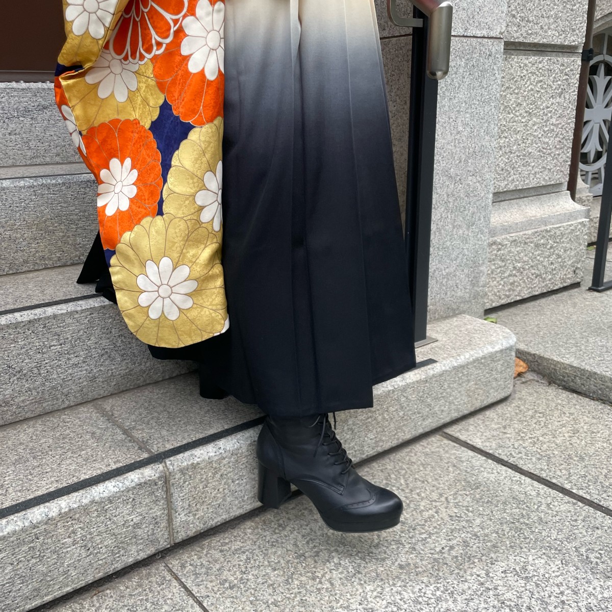 ブーツの場合は筒とヒールの高さによって、袴の長さを調整する必要があります✨