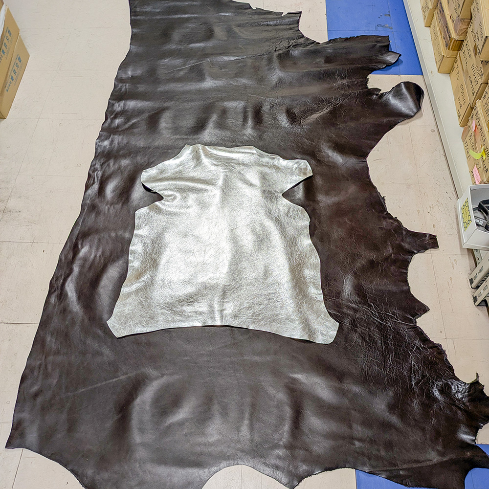 ちなみに牛革の方は半裁(一頭を縦に2分割した大きさ)です。