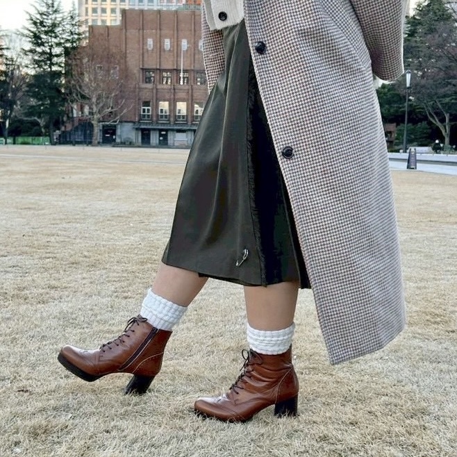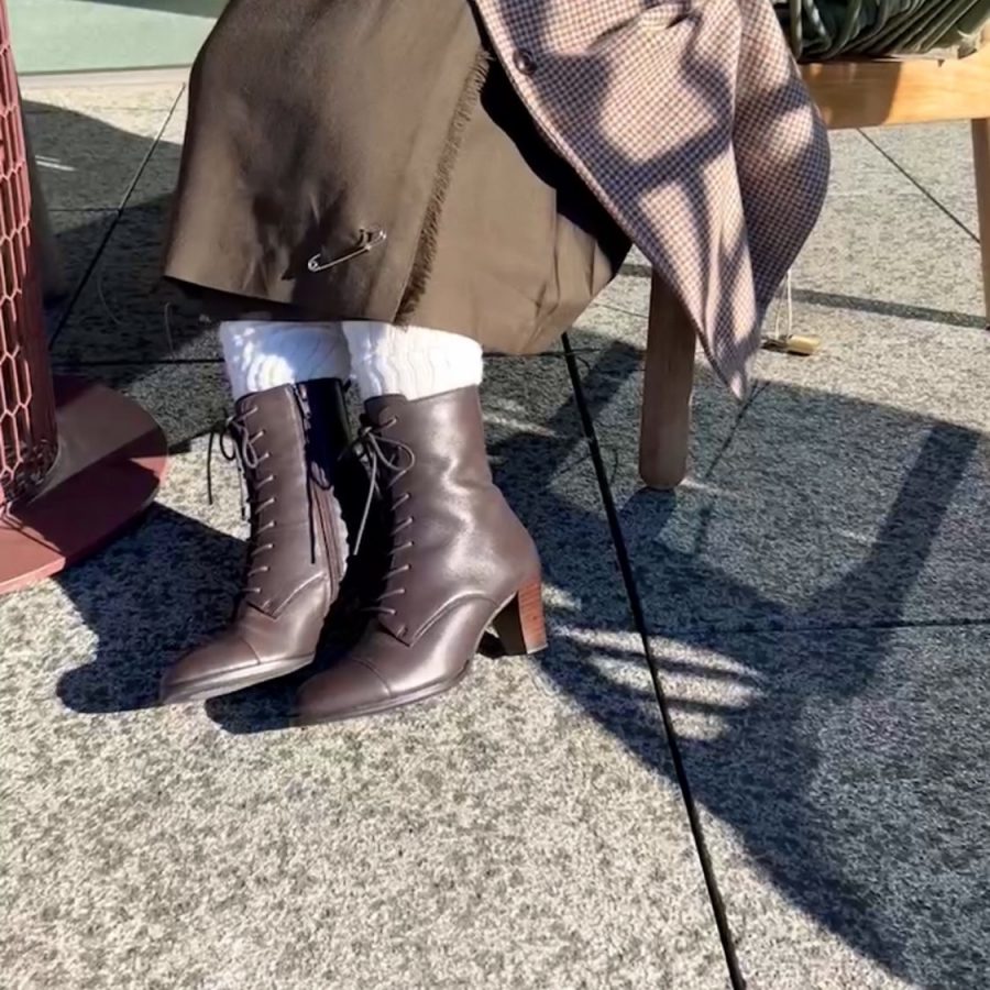 太めのヒールとクラシックなレースアップで、甘すぎず強すぎないデザインで何にでも合わせやすいですよ💕