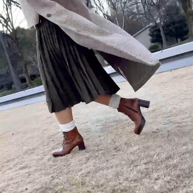 歩いてるところは動画のスクショなのですが、どの角度からでもシルエットが綺麗なので、履いていて気分が上がりました❣️