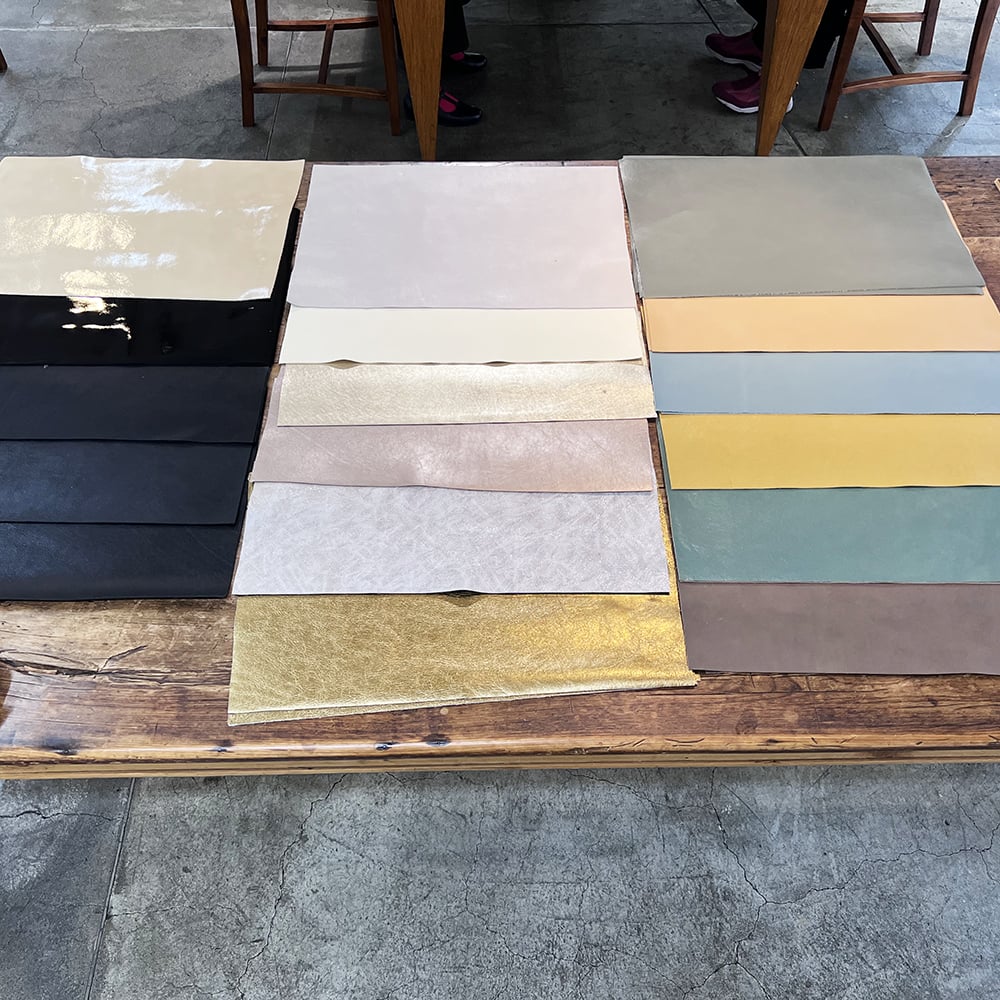 ご挨拶をしたら早速今日つかう革と革ひもを選んでいただきます。