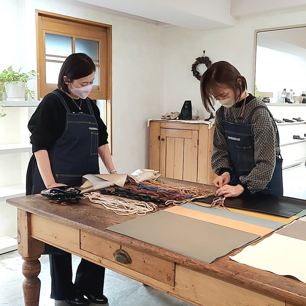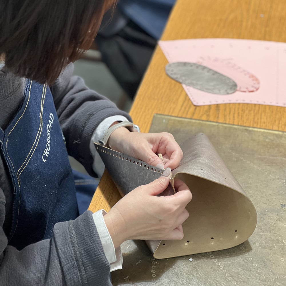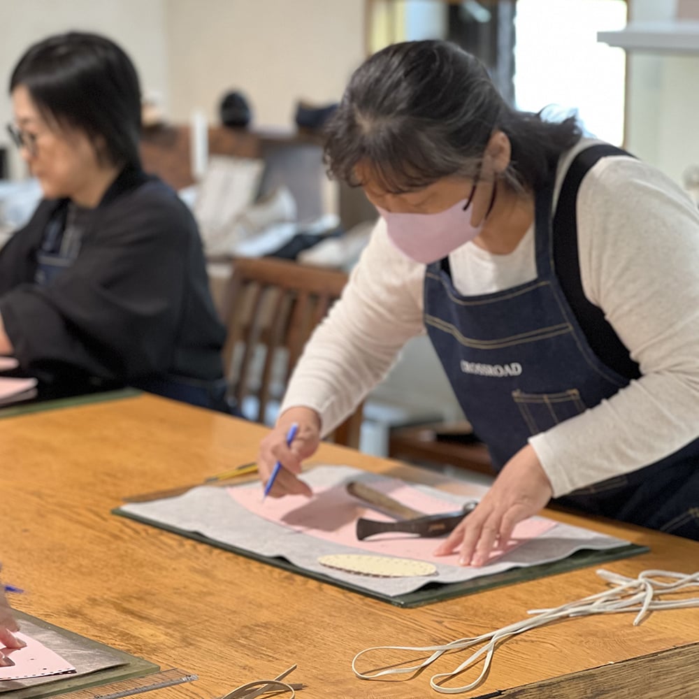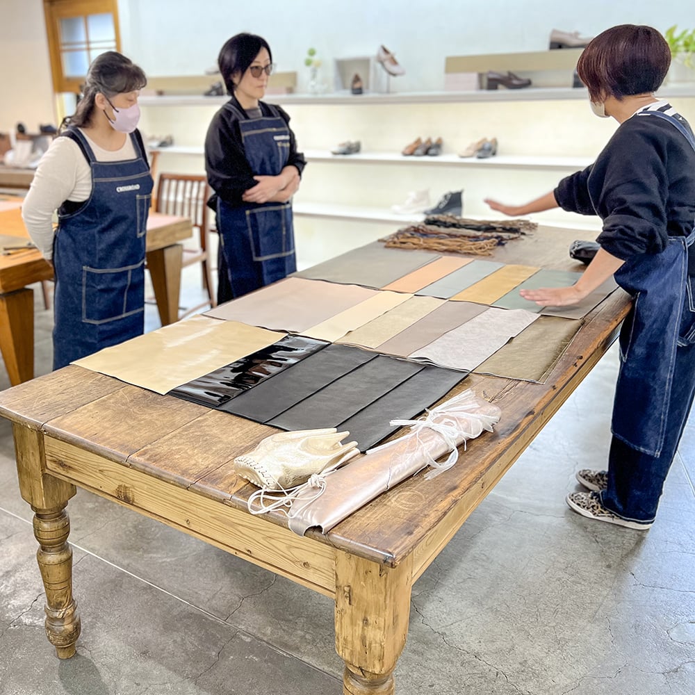 靴をつくった時に出る余った革をアップサイクルしておこなっているこちらのワークショップ。