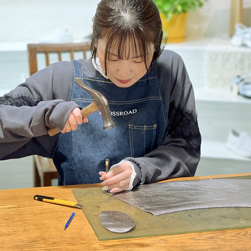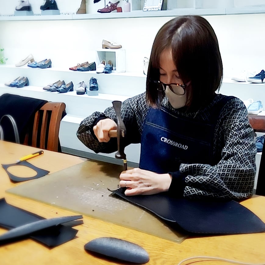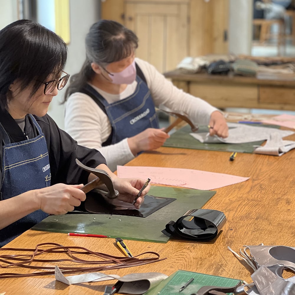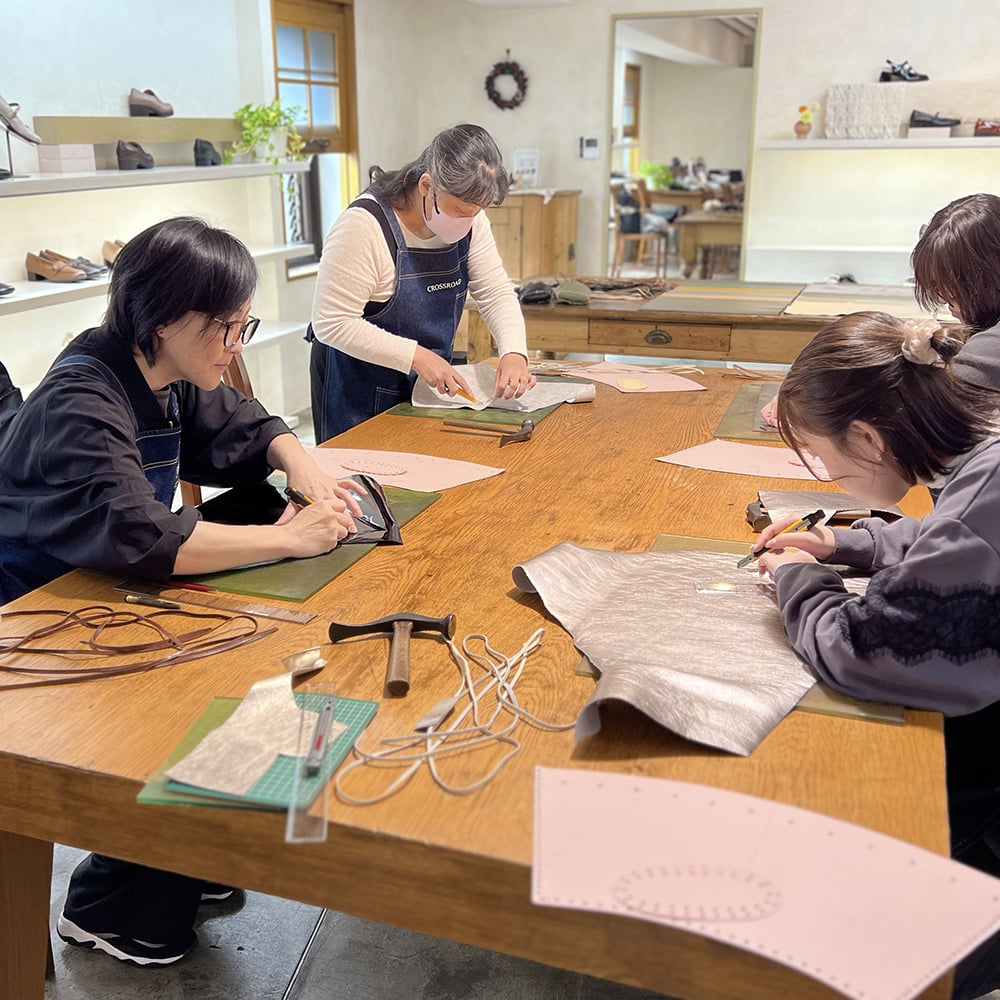 靴をつくった時に出る余った革をアップサイクルしておこなっているこちらのワークショップ。