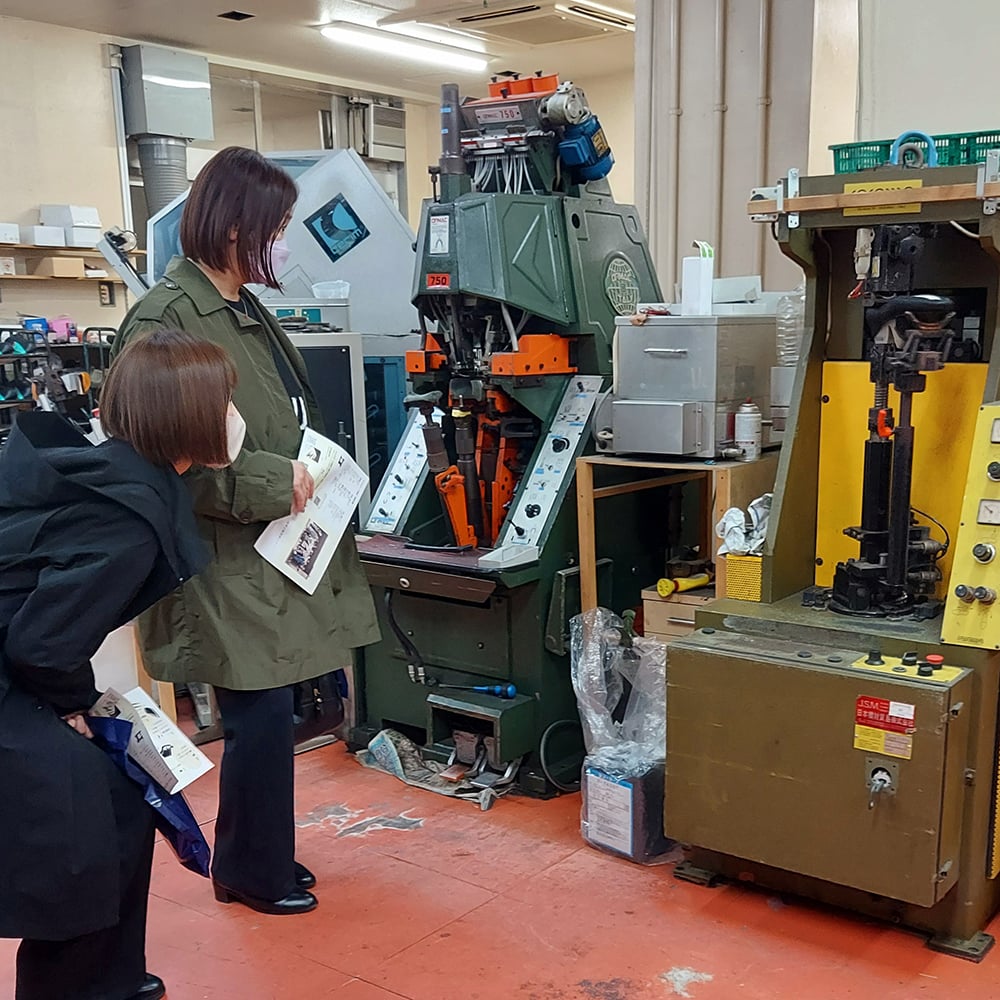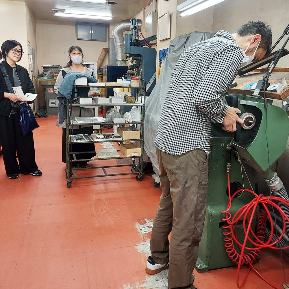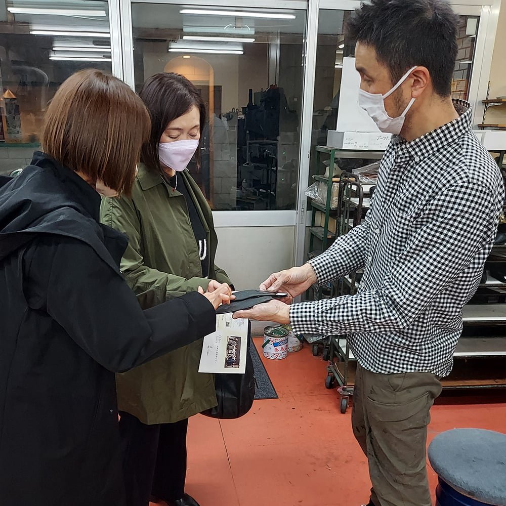 製作の途中に、お互いの革を触ってもらったりもしました。