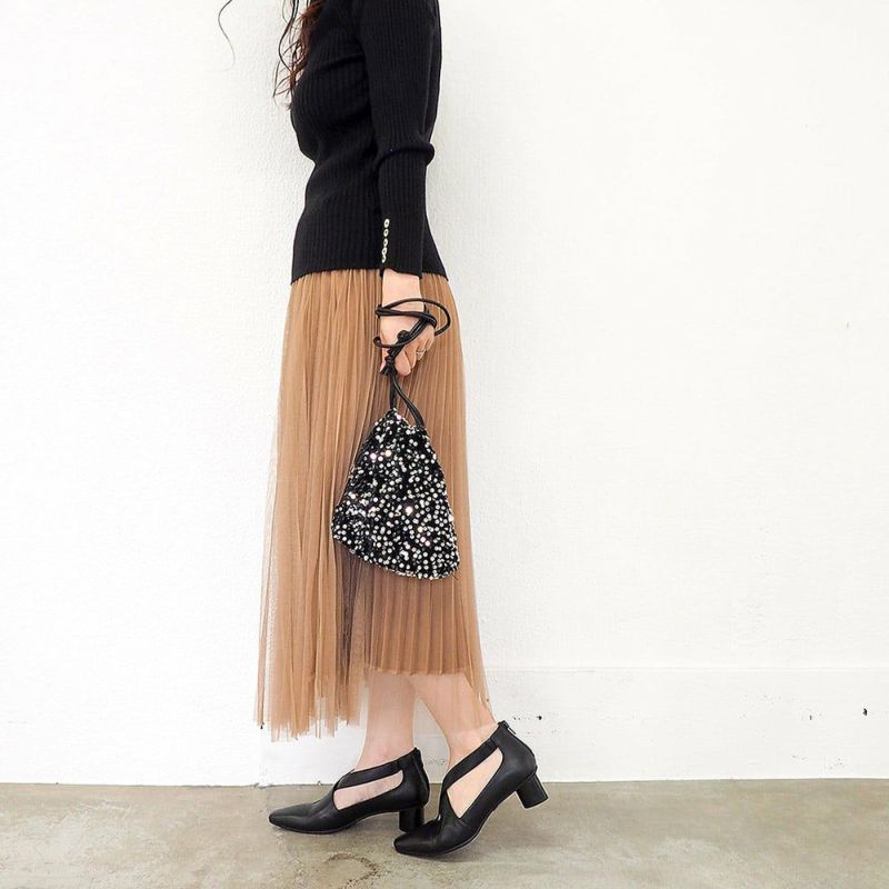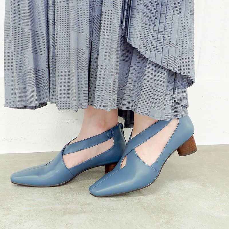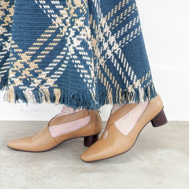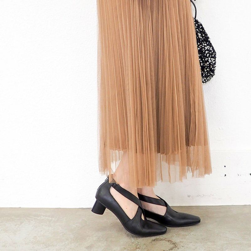 ヒールは4.5cmの円柱状フォルム。きちんと感と歩きやすさを兼ね備えながら、さりげなく個性を演出。さらに返りのよいアウトソールが、足にしなやかにフィットし、長時間の歩行も快適です。