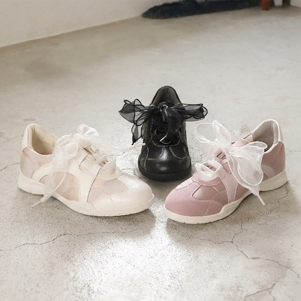 立体感のあるオーガンジーリボンが目を惹くスイートなバレエコアスニーカー。