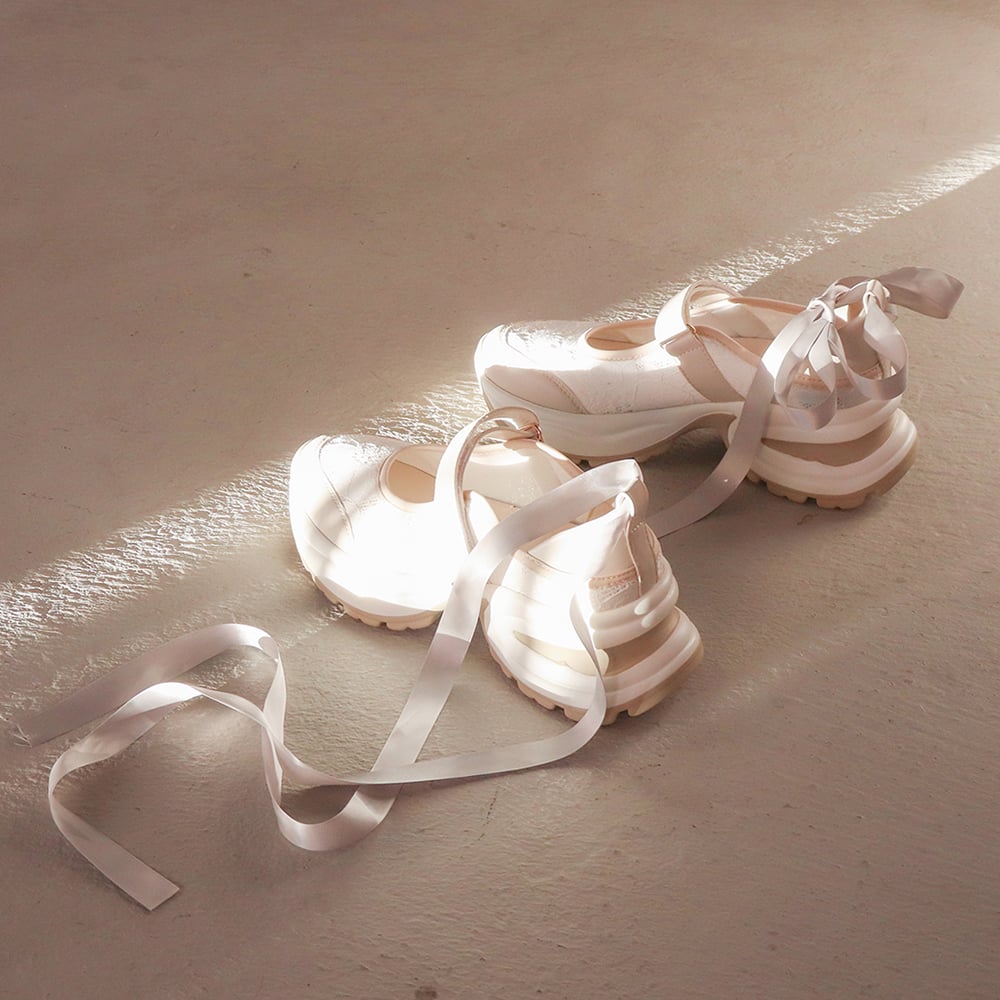バレエコアの要素をぎゅっと詰め込んだ、厚底バレエスニーカー。
