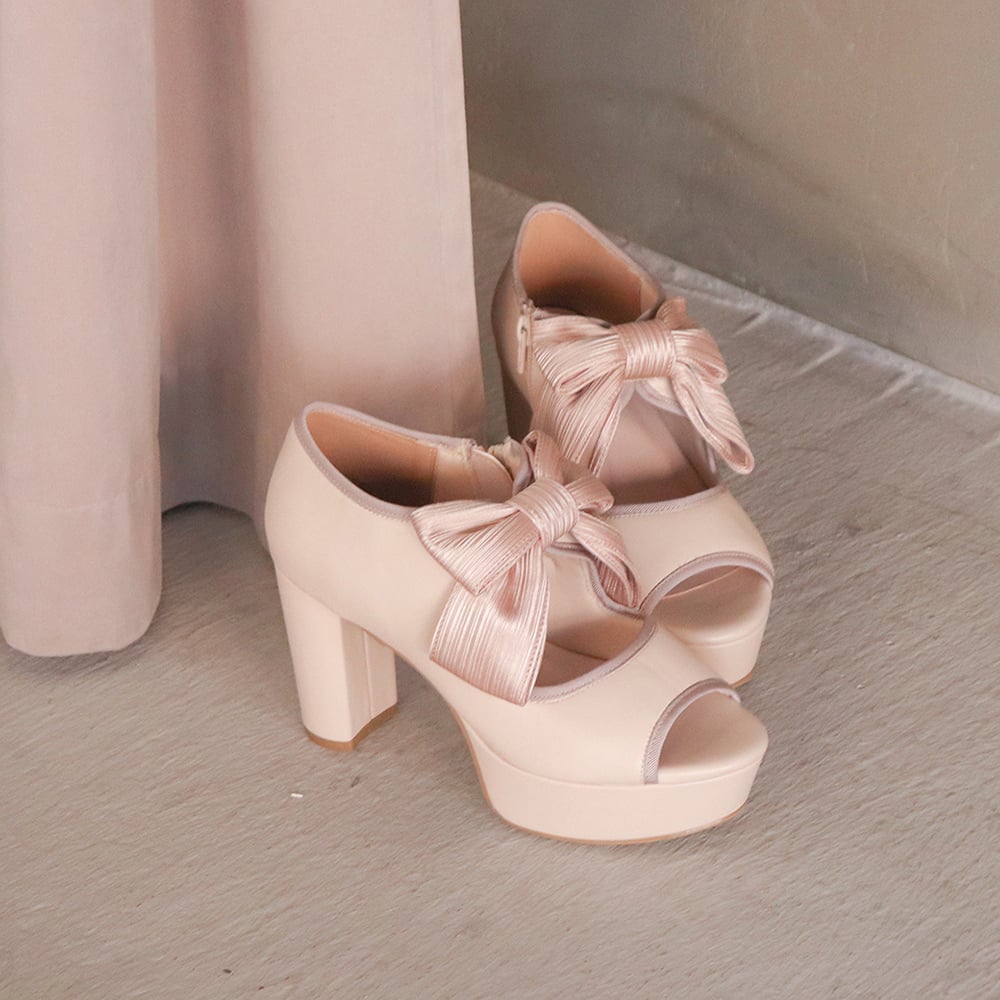 きちんと感を抑えつつ、春らしいチュールの透け感を楽しめる一足です。