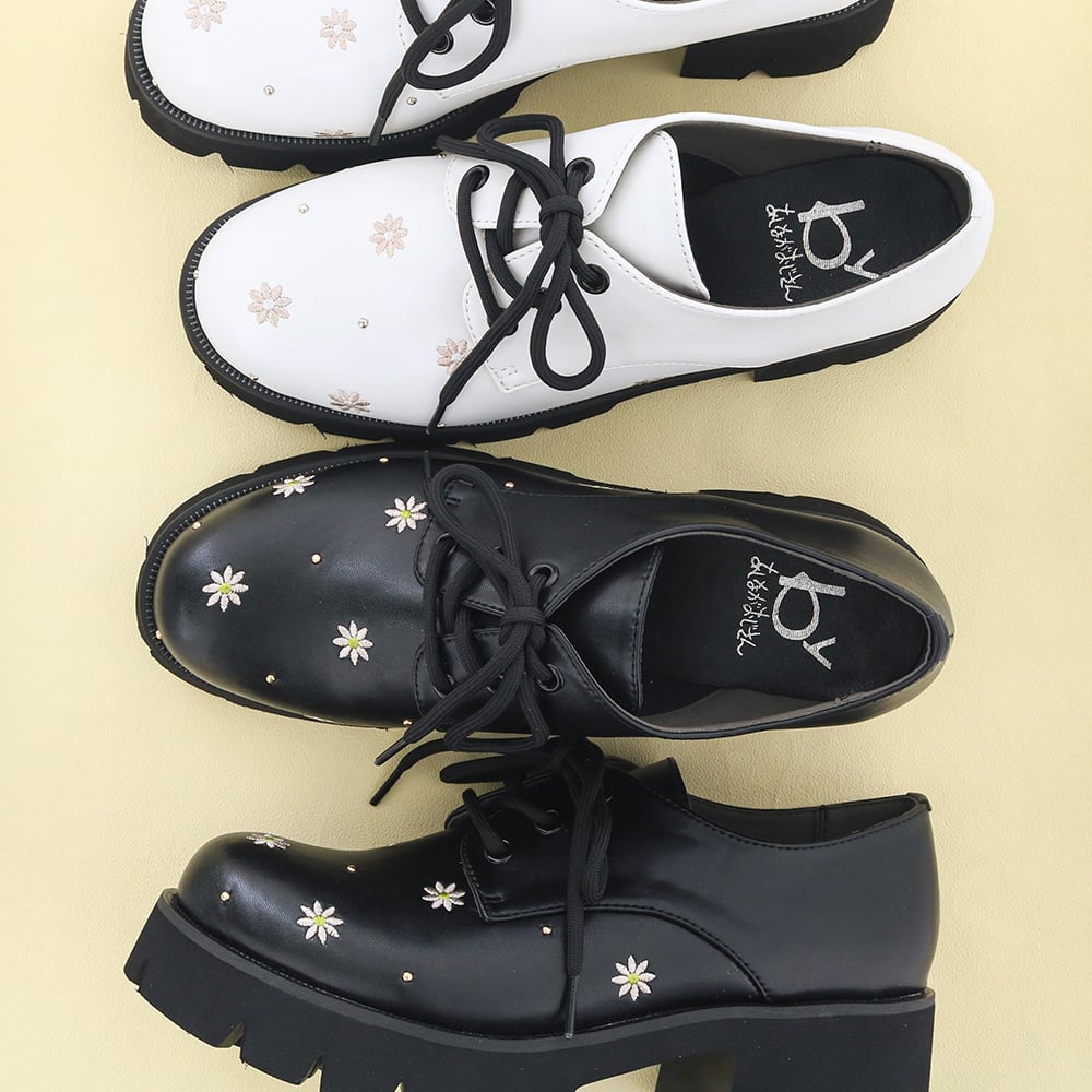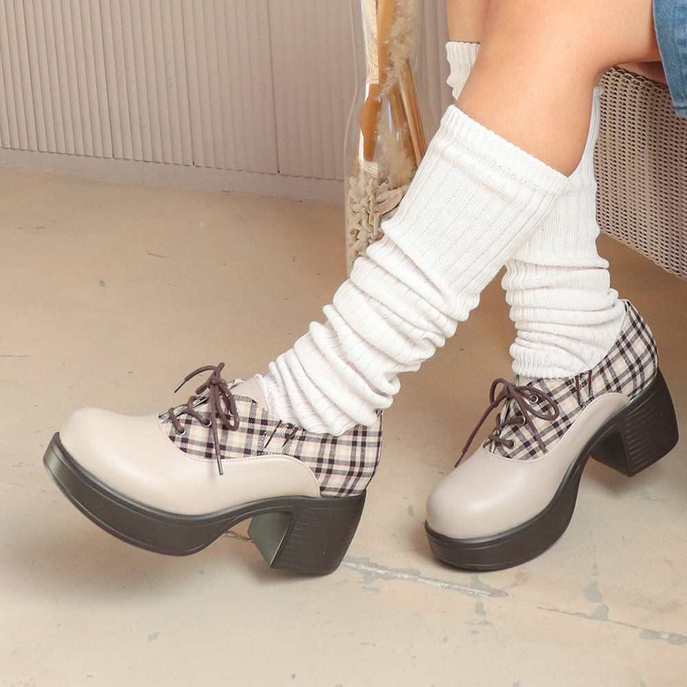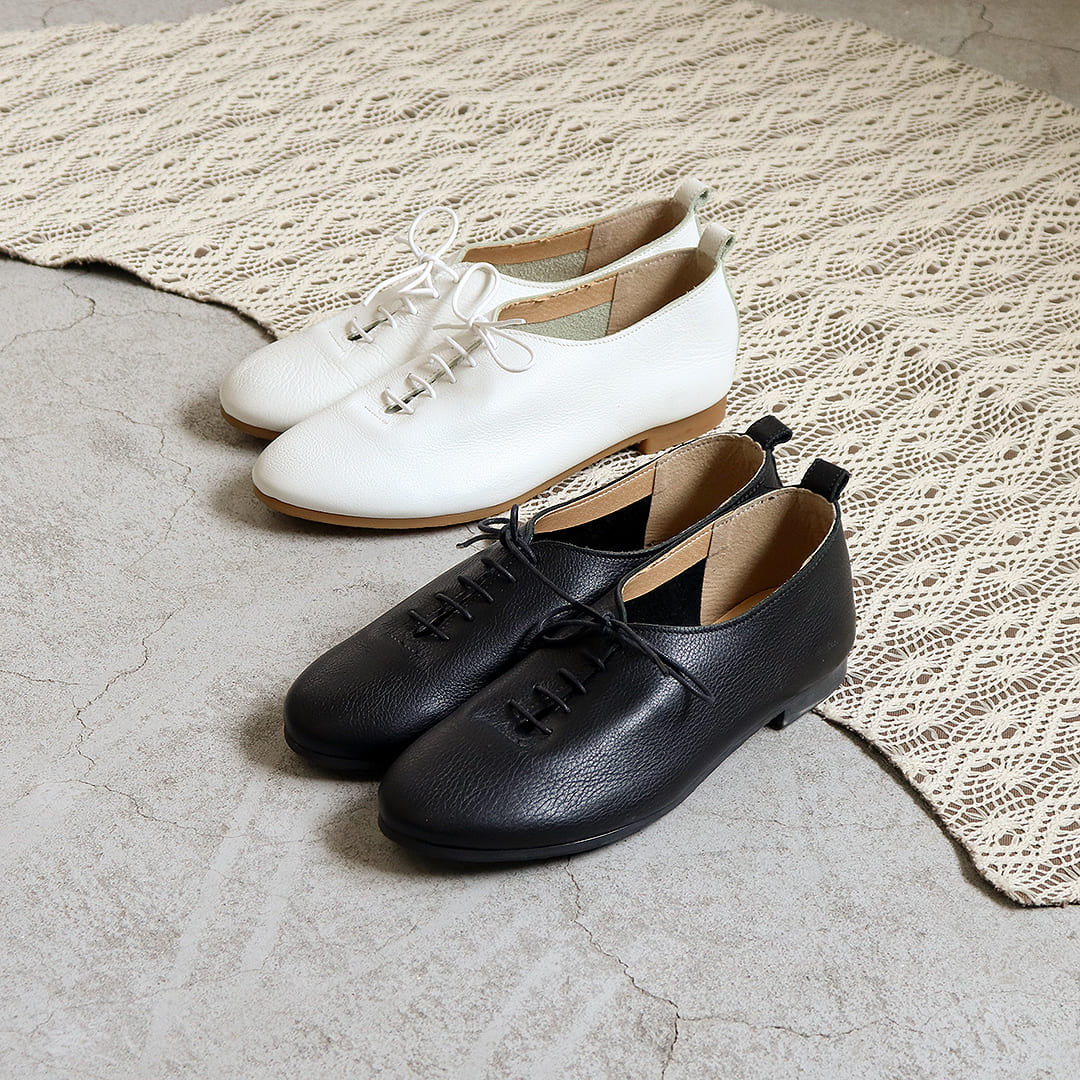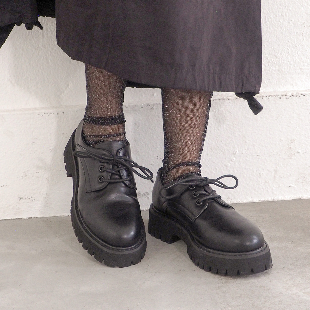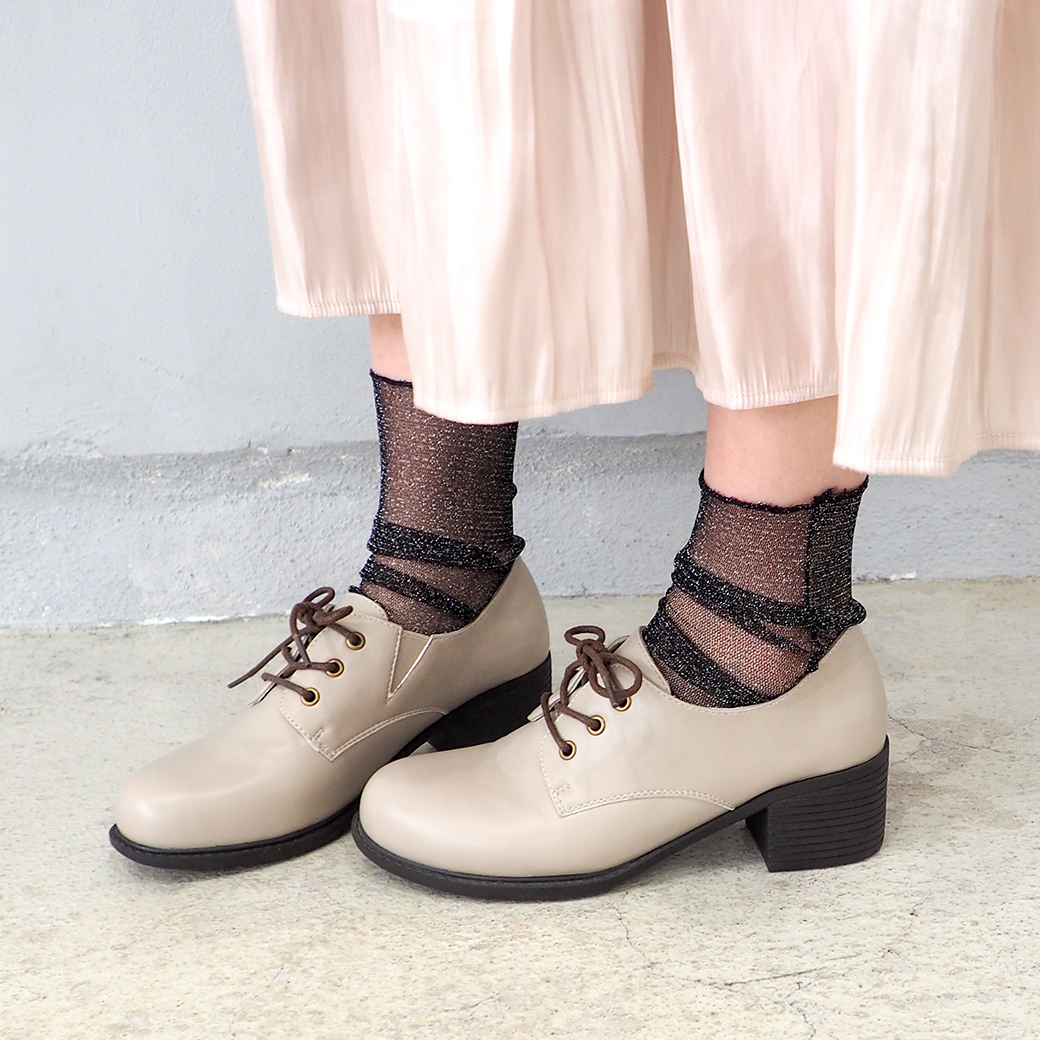 タイツや靴下と相性のよいレースアップシューズは、秋冬もおすすめアイテムです。