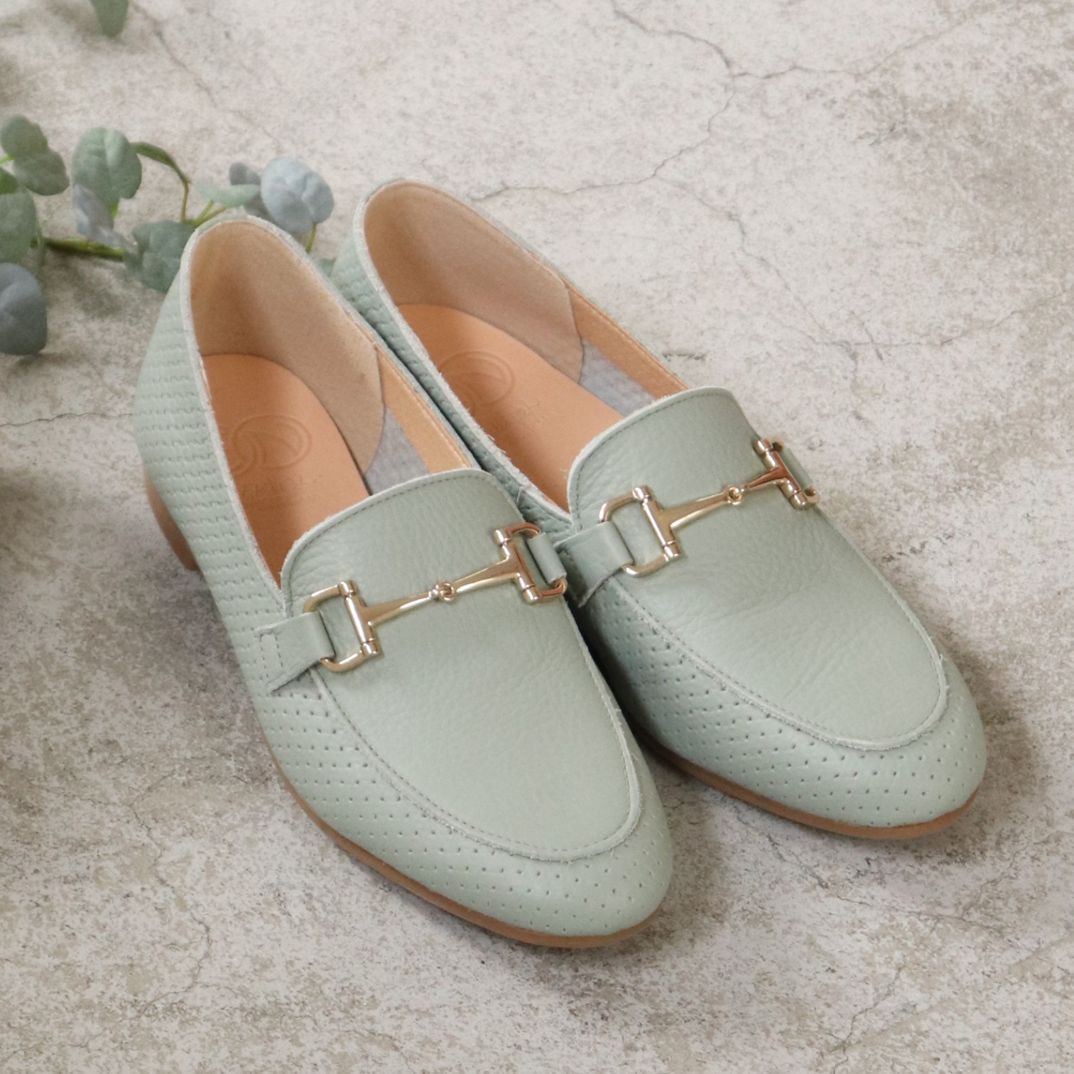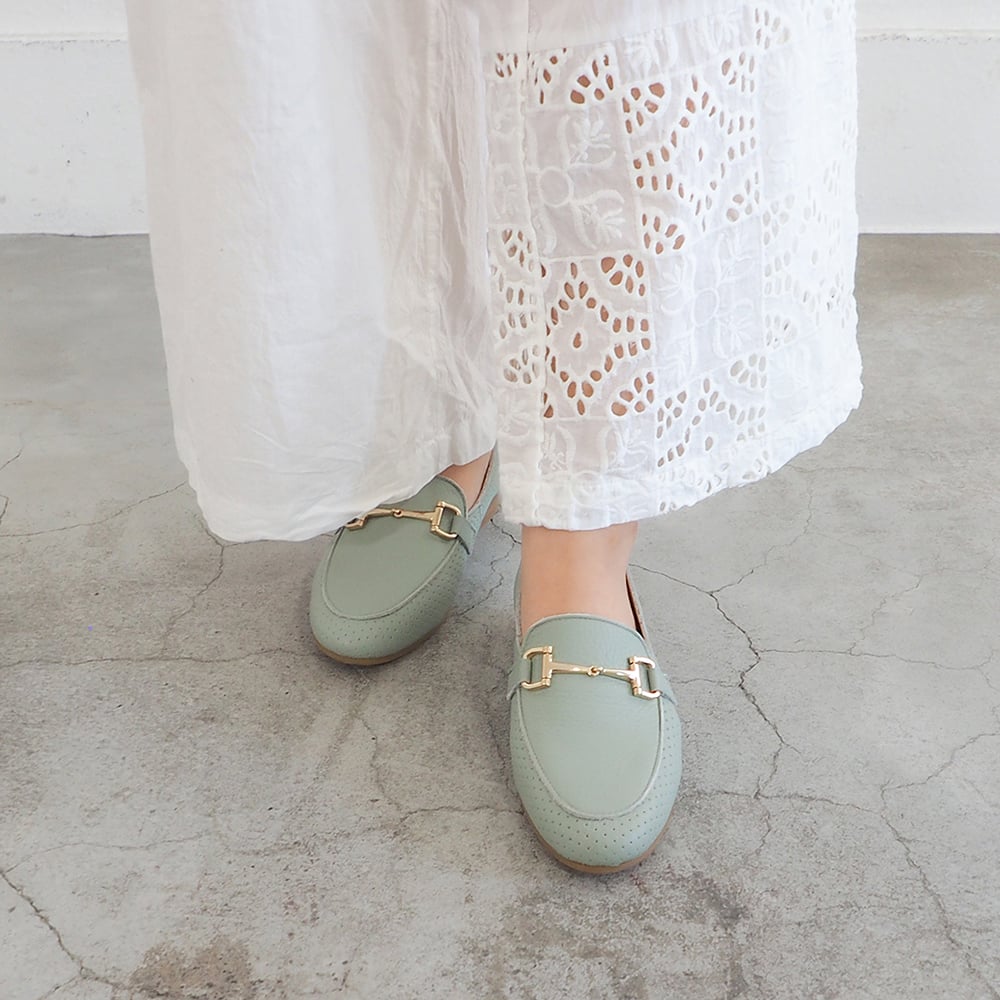ミントカラー×ゴールド金具の組み合わせで、上品な大人の春の足元を演出してくれます。