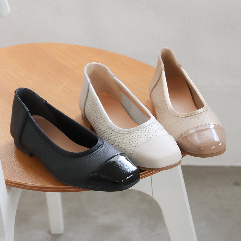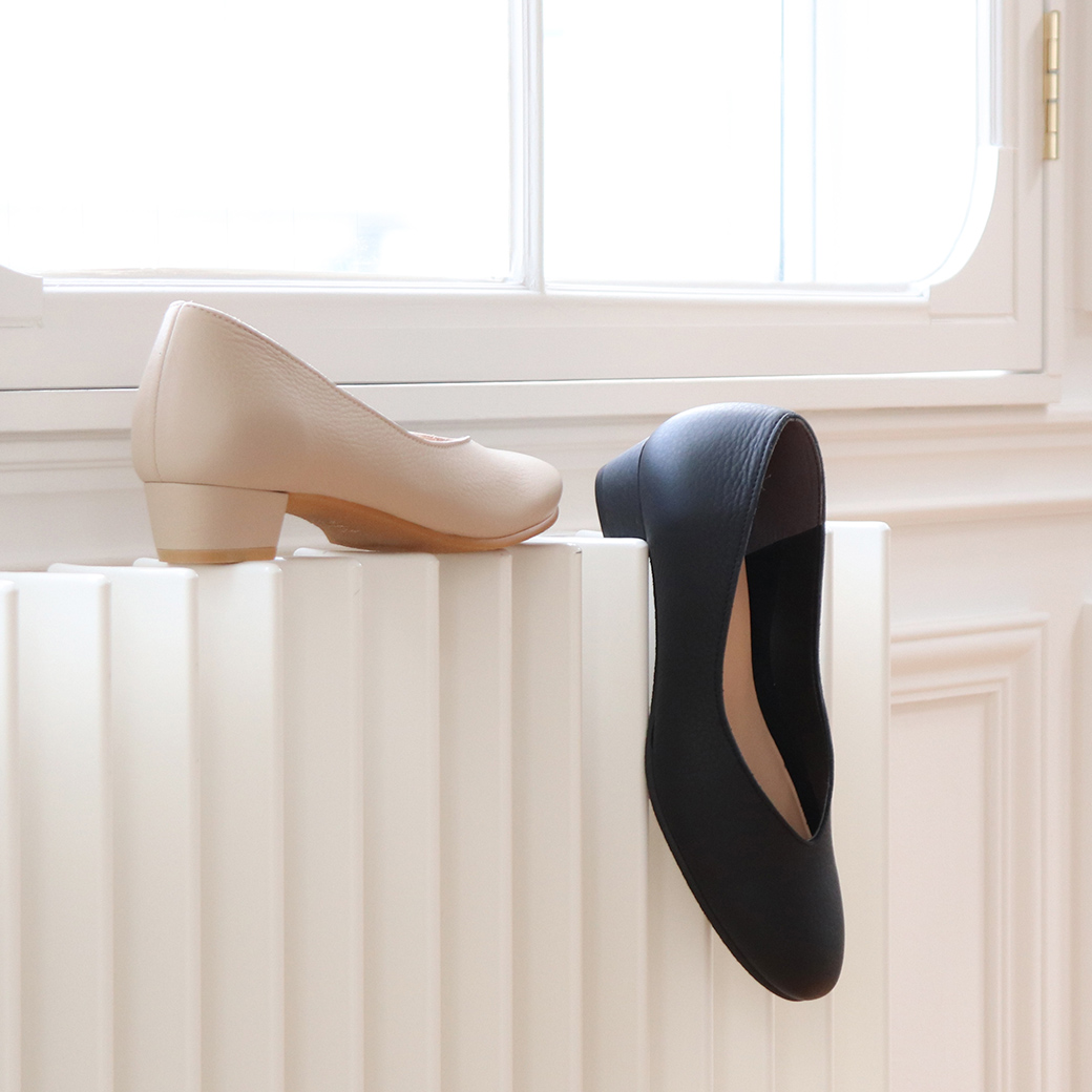 ぺたんこに近い形で履きたい方は、定番の2.5 cmローヒールパンプスを。