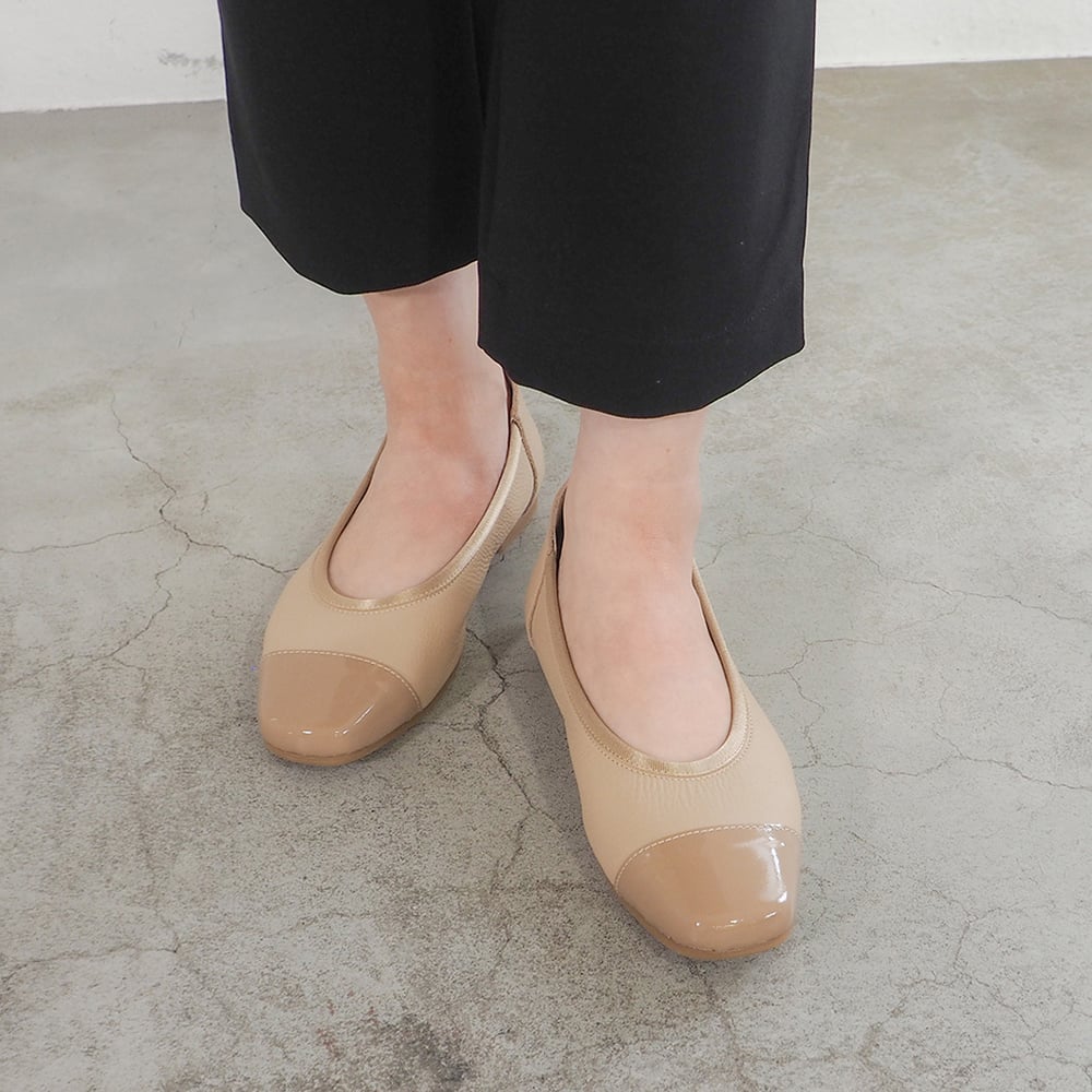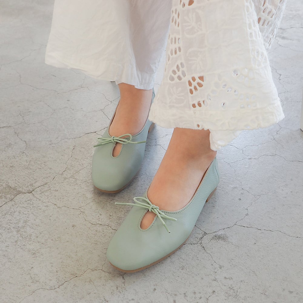 甲に開きのあるデザインが春らしく爽やかなバレエシューズ。
