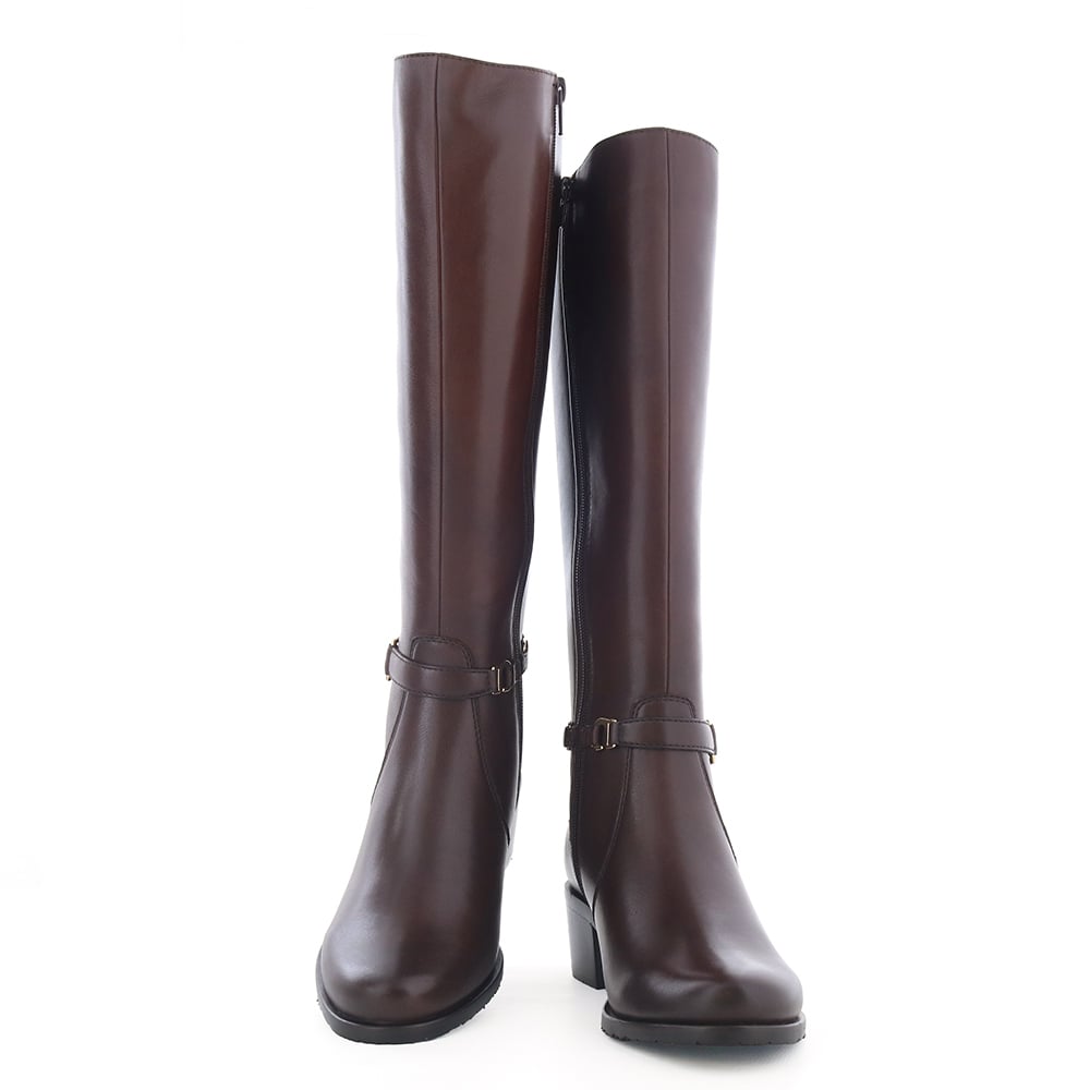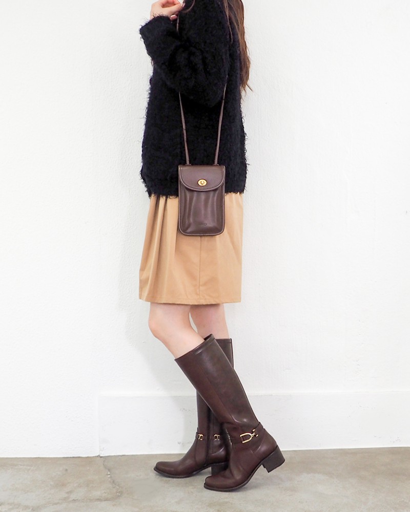 3.きれいめに合わせる、本革の上品ロングブーツ