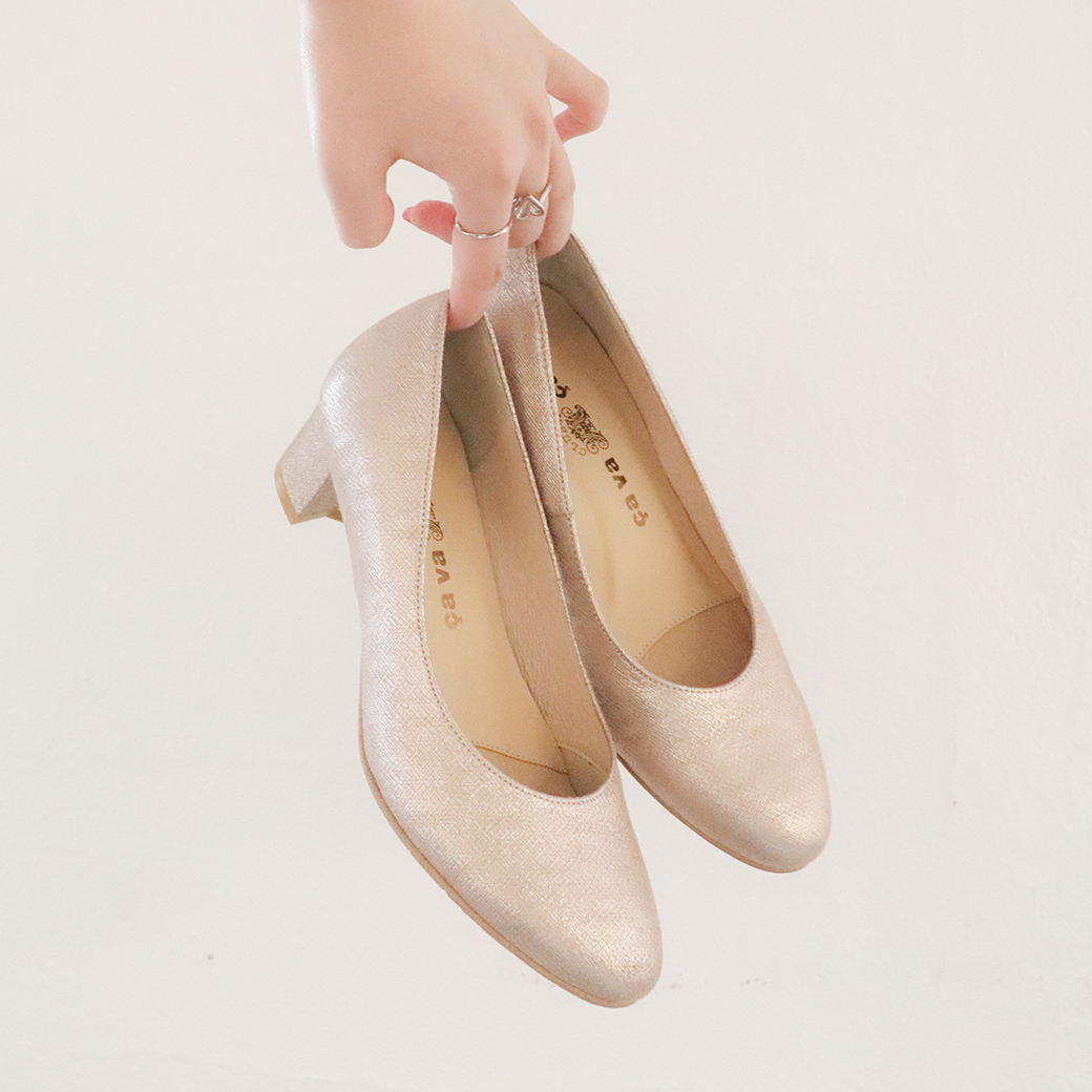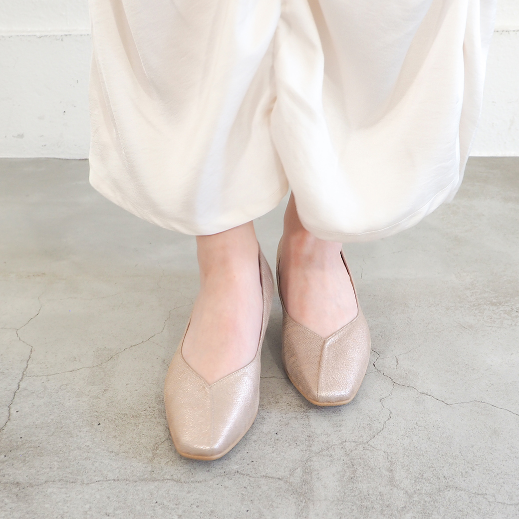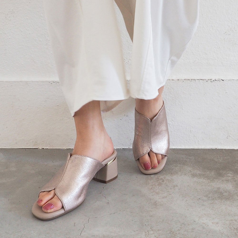 ゴールドほどの派手さがなく、ベージュの延長線上で履ける肌なじみのよさ。パーティーシーンはもちろん、カジュアルなスタイリングもクラスアップ。