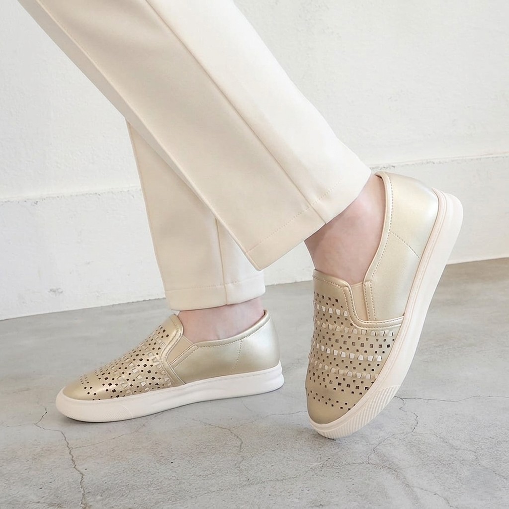 2026 SSは、メタリックのさりげない部分使いに注目。ローテクで抜け感のあるスポーティアイテムを取り入れて、日常使いでさらっと履きこなして。