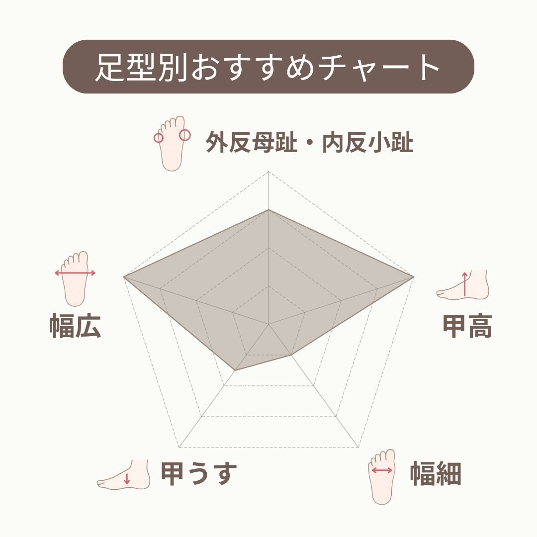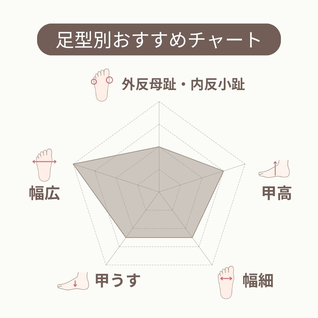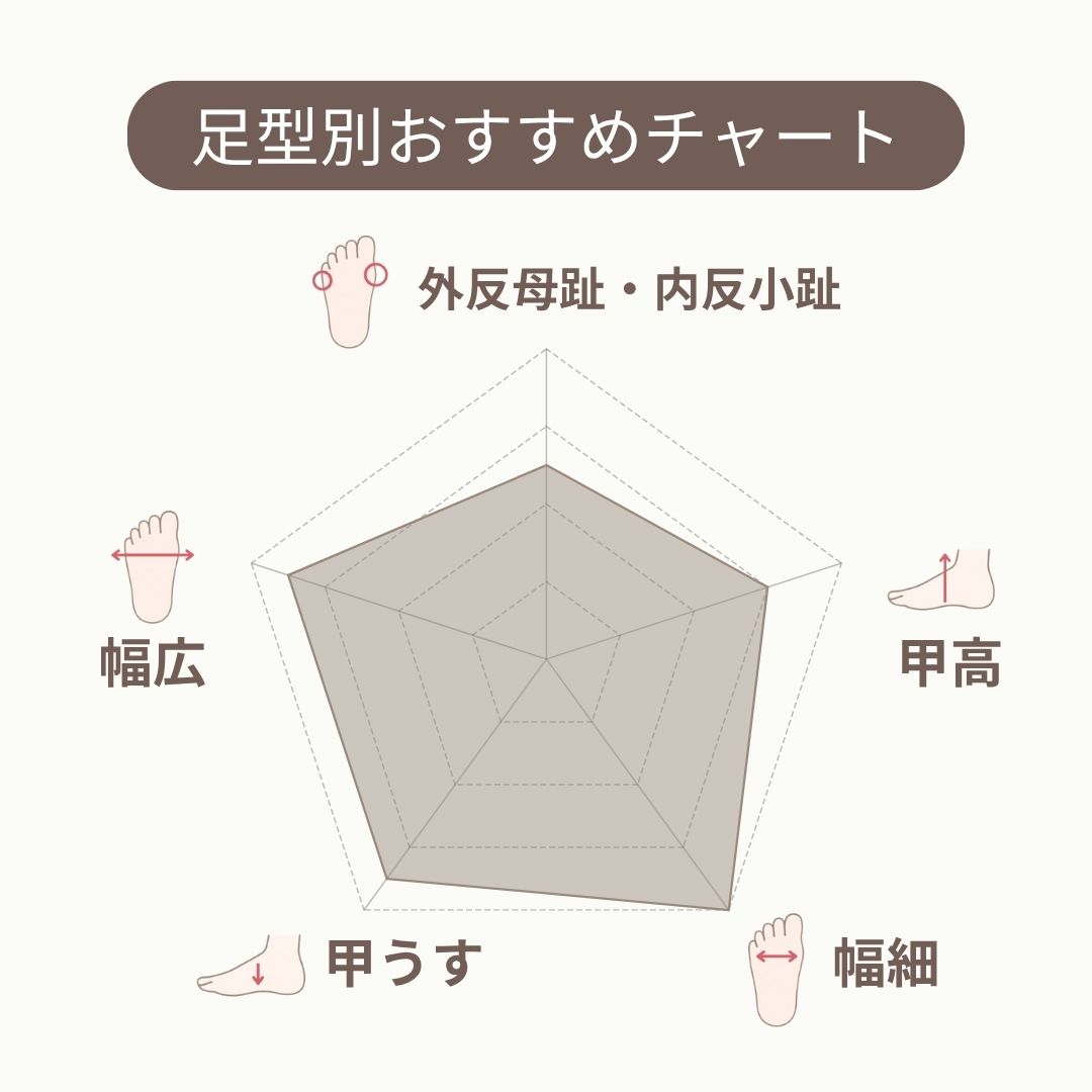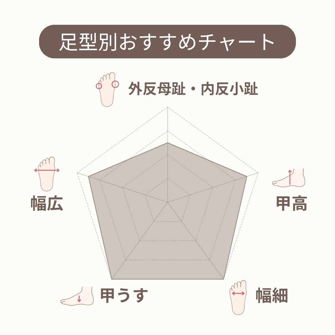 幅広~幅細さん、甲高~甲うすさん、外反母趾さんまでほぼすべての足型に対応します。