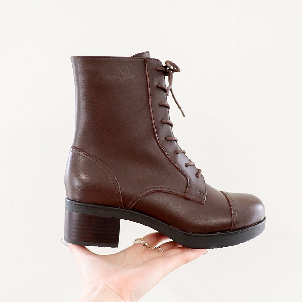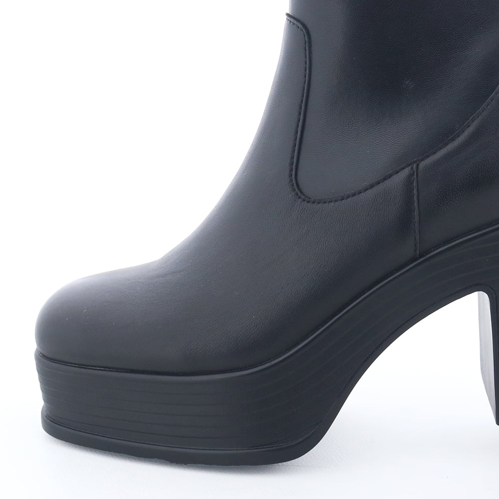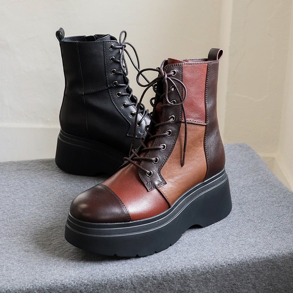 どこかレトロなムードが漂う大人の厚底ブーツ。