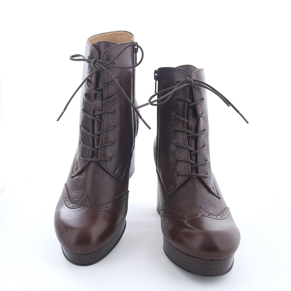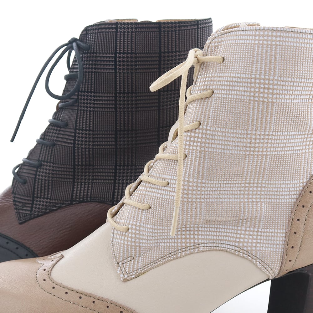振袖・袴がより見映えする丈感、ヒールの高さ、レースアップデザイン。革がとてもやわらかく、前底に厚みのある安定ヒールで履き心地も抜群。