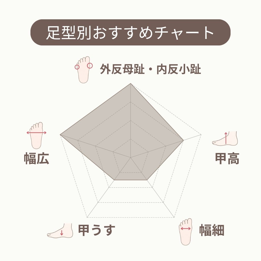 縫い目や切り替えが当たらないため、外反母趾さんや幅広さんに特におすすめです。