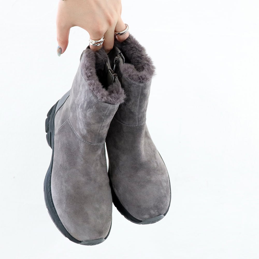ボリュームを抑えたスリムなシルエットで、洋服を選ばず合わせやすいのが魅力です。カジュアルになりがちな防寒ブーツですが、おしゃれで品ありな足元に仕上げてくれる一足です。