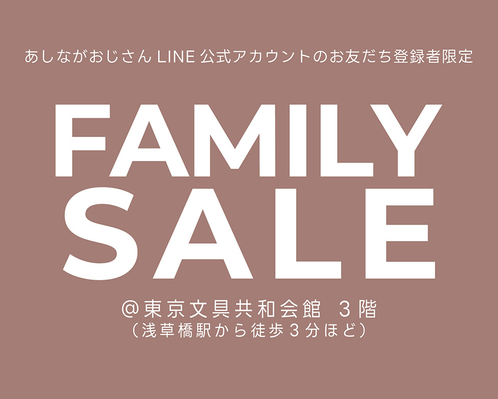 今回のファミリーセールは、あしながおじさんLINE公式アカウントのお友だち登録者限定で開催いたします。
